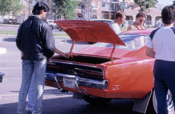 It showed up at this carshow wearing a horrible orange paintjob, big tires, and a stock 1969 Charger front clip. Nobody paid any attention to it until they noticed the rear window. He didn't even notice what the difference was between his car and the other Chargers at the show.
