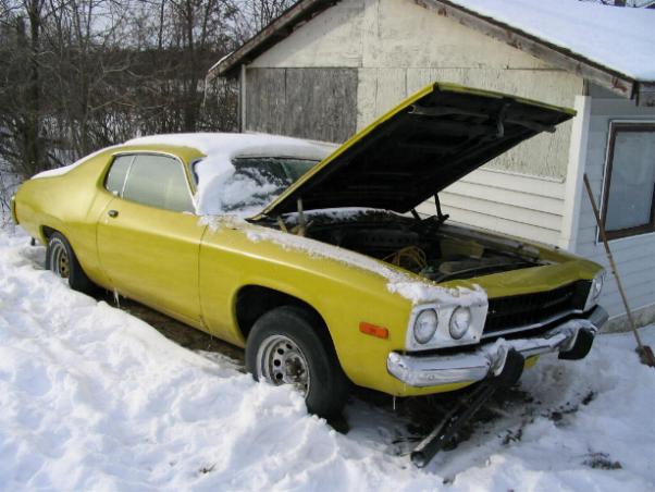 Well I was not expecting this. We found a basically un-molested and complete 73 Roadrunner. The car was still equipped with its factory installed 400 4bbl big-block, 4 speed transmission, sure grip rear-end, rally dash, bucket seats, power windows and factory sunroof! Oh, lets not forget the new fenders and rear quarters put on for the last owner.